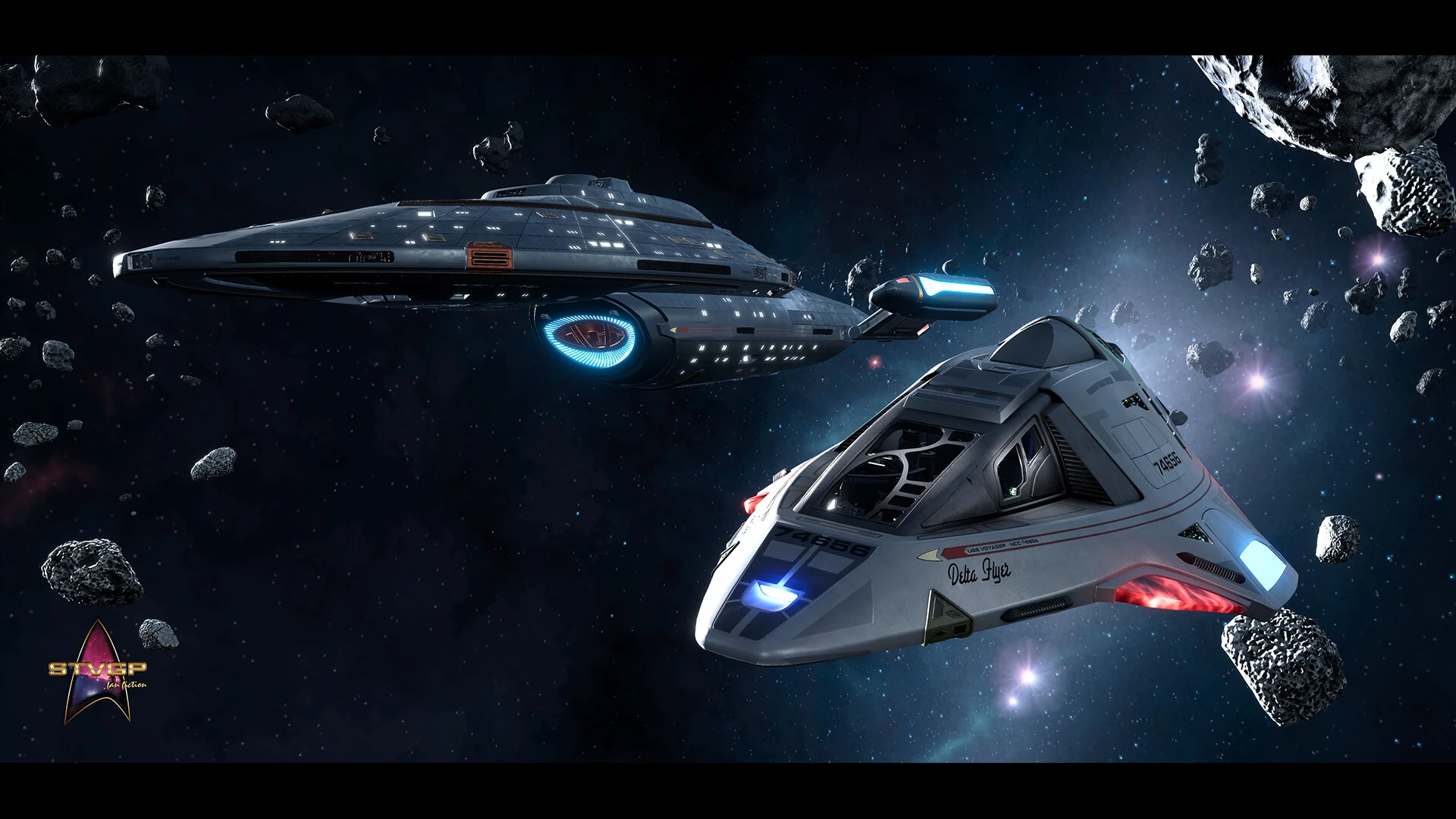 A Flyer-class Heavy Shuttle with an Intrepid-class Light Cruiser